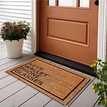 Show moreWelcome guests to your home in style with the Funny Coir Doormat, a perfect blend of functionality and personality. Measuring 23.6 x 15.7 inches, this doormat is crafted from 100% pure coconut coir, renowned for its durability and strength. It features a heavy-duty PVC anti-slip backing that ensures it stays securely in place, providing a stable platform for wiping your feet whether it’s rainy, snowy, or sunny outside. The chic and trendy design is not only decorative but also a functional reminder to keep your essentials, like keys, wallet, and glasses, at hand and not left behind.