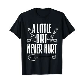 Show moreIntroducing the **Funny Gardening Gift For Men Women Garden Planting Gardener T-Shirt**, a delightful addition to any gardening enthusiast's wardrobe. This t-shirt showcases a witty message, "A Little Dirt Never Hurt," which captures the essence of gardening and the joy that comes from nurturing plants. Crafted from high-quality, soft fabric, this t-shirt is designed to keep you comfortable whether you’re getting your hands dirty in the garden or enjoying a casual day out. Available in a variety of sizes, it's perfect for gardeners of all ages, making it an ideal gift for men, women, boys, and girls alike. With its classic fit and lightweight design, this shirt excels in versatility, becoming a staple in your casual wear collection!