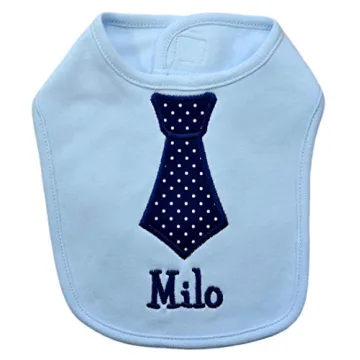 Introducing the delightful custom-embroidered Fabric Neck Tie Bib, a perfect keepsake for your little one! This charming bib is designed specifically for baby boys aged 0 to 12 months, and adds a touch of personalization to their daily outfits. Made from soft, high-quality fabric, it is not only adorable but also practical, helping to keep your baby clean during mealtime while looking dapper at the same time.