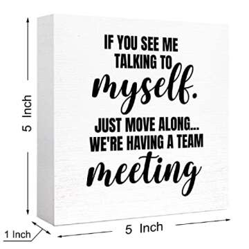 Show moreIntroducing our **Funny Office Wood Box Sign**, a delightful addition to any workspace or home that brings a smile and a dash of inspiration! This beautifully crafted wooden block features the humorous quote, "If You See Me Talking to Myself, We're Having a Team Meeting." Perfectly sized at 5"H x 5"L x 1.2"D, it fits effortlessly into a variety of spaces, including your desk, bookshelf, or even your coffee table. Made from high-quality natural wood, this charming plaque is not only visually appealing but also embodies a sense of encouragement and positivity that is sure to uplift the mood during tough times.