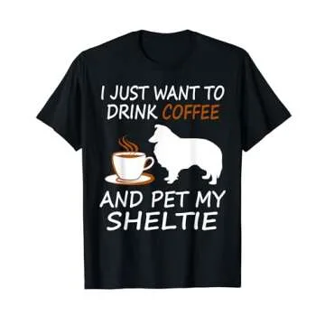 Funny Sheltie T-shirt Drink Coffee Pet Sheltie Tee Shirt