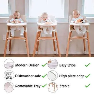 FUNNY SUPPLY Wooden Baby High Chair with Removable Tray Adjustable Footrest Legs Classic Design Grows with Your Child