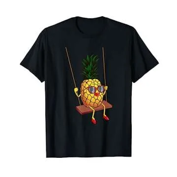 The Funny Swinging Pineapple Lover Gift T-shirt is available in a range of sizes from small to XXL, ensuring a comfortable fit for everyone.