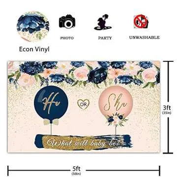 Funnytree Navy and Blush Gender Reveal Party Backdrop He or She What Will Baby Be Pregnancy Reveal Balloon Floral Banner Decoration Supplies Favors Photography Background Photobooth Prop 5x3FT
