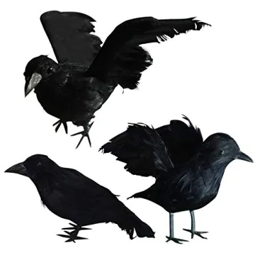 FUNPENY Halloween Black Feathered Crows, 3 Pack Black Crows with Real Feather Halloween Decoration for Indoor Outdoor