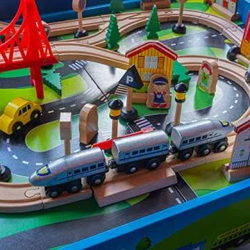 FUNPENY Train Table Toys,Wooden Train Track Railway City Sets Table for Kids Toddlers