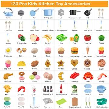 Funpynani 130Pcs Kitchen Playset - Toddler Pretend Cooking Toys