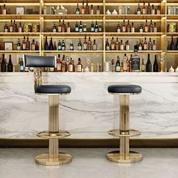 FUNROLUX Swivel Bar Stools with Backrest, Modern Adjustable Height Counter Stool with Metal Legs and Comfortable Cushion, Black and Gold Bar Chair for Kitchen Island Counter (Black)