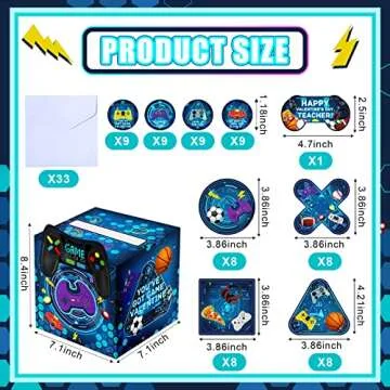 Funrous Valentines Day Cards and Mailbox for Kids Classroom Exchange, 1 Box, 32 Student Cards, 1 Teacher Card, 33 Envelopes and 36 Stickers for Valentines Party Favor Gift Exchange(Video Game Styles)