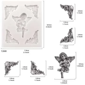 Funshowcase Angel Tag Frame Corner Scrollwork Fondant Silicone Mold for Cake Decoration, Polymer Clay Crafting Projects 4-Count