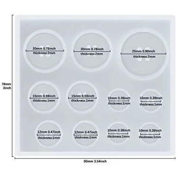 Show moreUnlock your creativity with the Funshowcase Button Resin Epoxy Silicone Mold! This versatile set of clear rubber molds comes in assorted sizes, perfect for creating custom buttons for keychains, charms, rings, bracelets, hairclip mounts, earrings, and studs. Whether you're a DIY enthusiast or a professional crafter, these molds will elevate your crafting game. Made from high-quality silicone, they can be used with a wide range of both edible and non-edible materials, including resin epoxy, UV resin, concrete, plaster, candle wax, soap, and isomalt. The transparent design allows you to monitor your project as it progresses, ensuring flawless results every time.