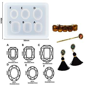 Funshowcase Jewelry Oval and Emerald Cut Diamond Resin Epoxy Silicone Mold Mini