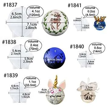 Show moreUnleash your creativity with the **Funshowcase Sphere Round Silicone Mold Set**, perfect for all your DIY delight! This versatile 5-piece set features molds in various sizes — ranging from 20mm to 60mm — ideal for crafting stunning geode bath bombs, dazzling resin jewelry, artistic sphere charms, and enchanting ice orbs. Whether you're a seasoned crafter or just starting, these molds will assist you in transforming your imaginative visions into remarkable creations. Made from premium, clear silicone, our molds boast smooth and shiny interiors that ensure a flawless finish and easy de-molding every time.