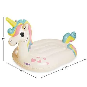 Show moreIntroducing the whimsical and enchanting 6-ft Unicorn Float, the ultimate summer accessory that promises joy and adventure for all water enthusiasts! Awarded the prestigious Family Choice Award, this float is designed to accommodate up to two individuals, making it the perfect companion for you and a friend to relax or enjoy some fun in the sun. Whether you’re lounging at the pool, splashing around at the beach, or drifting lazily on a lake, this float will bring a splash of delight to your aquatic escapades.