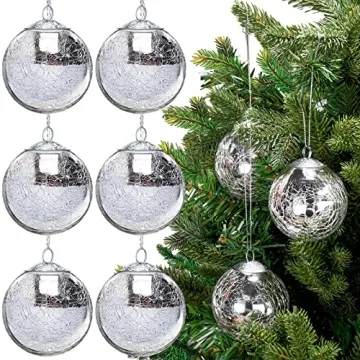 Show more Bring a touch of elegance and nostalgia to your holiday celebrations with our exquisite Funtery Vintage Crackle Ball Ornaments. Crafted from high-quality mercury glass, these stunning silver Christmas balls are designed to shimmer and shine, enhancing your festive decor with their unique crackled finish. With a compact yet substantial diameter of approximately 2.4 inches (6 cm), these ornaments are perfect for adorning your Christmas tree or as decorative accents in your living spaces. Their reflective surface beautifully captures light, creating a sparkling effect that is sure to be admired by all who see them.
