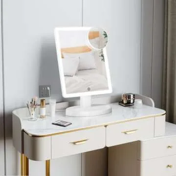 Funtouch Large Lighted Vanity Makeup Mirror with 88 LED, 360 Rotation Touch Screen, 10X Magnification Portable Tabletop Cosmetic Make Up Mirror