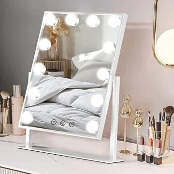 Show more The FUNTOUCH Makeup Mirror redefines beauty routines with its elegant design and exceptional functionality. Measuring an impressive 18.5" L x 14.2" W, this Hollywood-style vanity mirror features 12 LED dimmable bulbs that illuminate your face for a flawless makeup application, even in spaces lacking natural light. Experience the glamour of being on a movie set every day as you prepare yourself with the utmost precision and style.