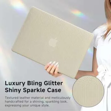 Funut Compatible with MacBook Air 13.6 inch Case 2022 2023 2024 Release M3 A3113 M2 A2681 with Touch ID, MacBook Air 13 M2 M3 Case Crocodile Leather Hard Shell Case & Keyboard Cover, Pudding