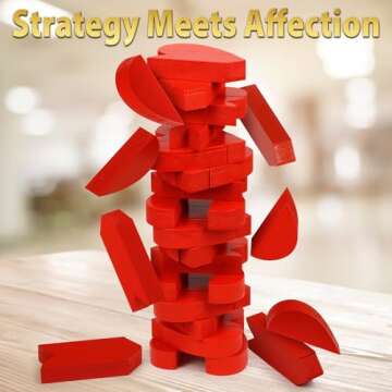 Funwares Wooden Blocks Stacking Game, Tumbling Tower and Balance Game, Family & Party Fun, Game for Kids and Adults, Ages 6+,The Enchanting Heart-Shaped Wood Blocks Stacking Game