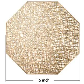FunWheat Round Metallic Vinyl Gold Placemats 15 inch Placemat Set of 6 Hollow Out Place mats Heat-Resistant Shining Table Mat Decorative Gift (Gold)