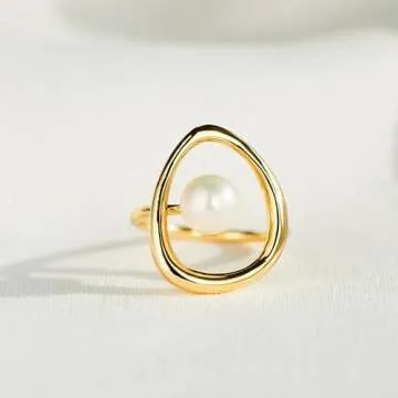 FUNYCHEN Pearl Ring for Women Sterling Silver Pearl Ring Gold Valentine's Day Gifts Graduation and Mother's Day gift for Her Irregular Ring Freshwater Cultured Pearl Ring Dainty Statement Ring Jewelry US Size 5-10 (Gold, 8)