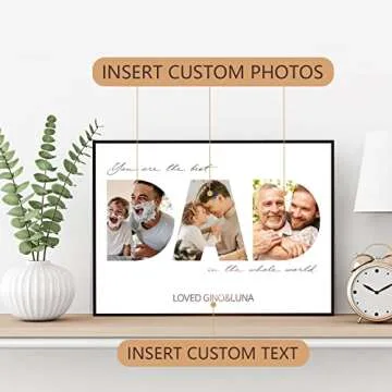 FUONLY Personalized Father's Day Gifts for Dad from Daughter Son Kids, Customized Wooden Picture Frame for Fathers Day, Custom Dad Gifts for Christmas, Sentimental Best Dad Ever Gifts for Birthday