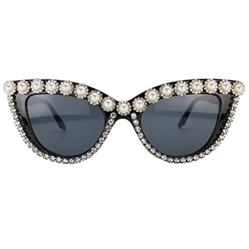 FUPRECIOUS Oversized Cat Eye Sunglasses for Women Handmade Rhinestone Pearl Plastic Frame