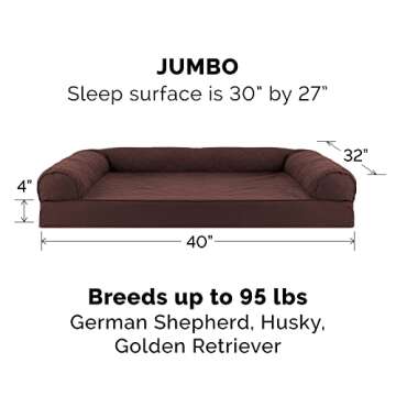 Furhaven Orthopedic Dog Bed for Large Dogs w/ Removable Bolsters & Washable Cover, For Dogs Up to 95 lbs - Quilted Sofa - Coffee, Jumbo/XL
