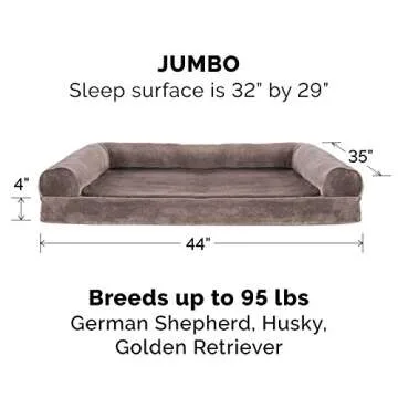 Show moreThe Furhaven Orthopedic Dog Bed is the ultimate sanctuary for your furry friend, especially designed for larger dogs weighing up to 95 lbs. This luxurious dog bed features a classic sofa design with three-sided bolsters that not only provide added security but also offer high-loft cushion support. The cozy bolstered sides create perfect nooks for burrowers while ensuring your pet has a comfortable place to rest their head. Made from quality materials, the bed showcases a stunning Driftwood Brown color that blends beautifully into any home decor, making it a stylish addition to your living space.