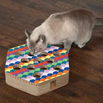 Furhaven Scratching Pad Ball Track Cat Toy w/ Catnip for Indoor Cats - Hexagonal Busy Box Scratcher - Rainbow Scales, One Size
