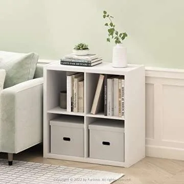 Furinno Cubicle Open Back Decorative Cube Storage Organizer, 4-Cube, White