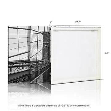 Show moreIntroducing the FURINNO Scenic Brooklyn Bridge 3 Panel Canvas on Wood Frame, where art meets craftsmanship! This stunning canvas set features a breathtaking high-definition photo of the iconic Brooklyn Bridge, beautifully printed on premium quality canvas. Each panel measures a generous 20 inches wide by 20 inches high, allowing for a striking display that spans a total of 60 inches in width. The visual appeal is amplified by the expert use of a spatial membrane, which ensures that every intricate detail of the bridge is captured flawlessly. With its gallery-wrapped design around a solid 1-inch thick wooden frame, this canvas art piece is not only visually captivating but also crafted to last for years to come.