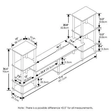 Show moreTransform your living space with the FURINNO Turn-N-Tube Grand Entertainment Center, an exceptional multipurpose furniture piece designed to accommodate up to a 48-inch television. Available in two stunning colors, Espresso and French oak grey, this entertainment center not only enhances the aesthetics of your home but also provides functional storage without compromising on design. Made from durable engineered wood and PVC poles, its sturdy construction ensures it is built to last, giving you peace of mind for years to come. Plus, the easy assembly process, which involves simply turning and twisting the poles against the boards, makes setup a breeze—no tools required!