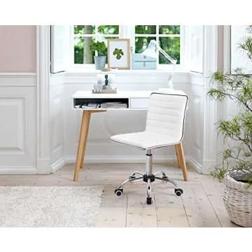 Show more Transform your workspace into a stylish retreat with this exceptional office chair. Designed with comfort and versatility in mind, this chair features high elastic foam padding that tenderly supports your back, ensuring that fatigue is kept at bay even during those long hours of work or creative sessions. With a 360° swivel seat, you can easily navigate your space while attending to various tasks, making it an ideal companion whether you’re working at your desk or glamming up in front of a vanity mirror.