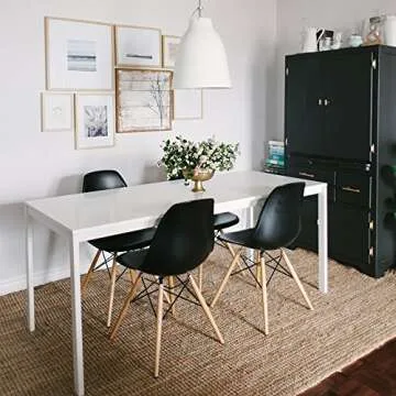 Introducing the Furmax Pre Assembled Modern Style Dining Chair, a striking blend of modern design and ergonomic comfort, perfect for those who appreciate style without compromising on support. This set of four Mid Century Modern DSW chairs boasts an elegant black molded plastic shell with a sleek matte finish, ensuring they fit seamlessly into any space—from kitchens and dining rooms to living rooms and bedrooms. With an easy one-step assembly that requires simply screwing the assembled...