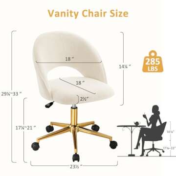 Furniliving Vanity Accent Chair, Modern Cute Round Desk Chairs with Wheels Adjustment Height Swivel Chair Upholstered Sherpa Gold Metal Base for Makeup Living Room Bedroom,White