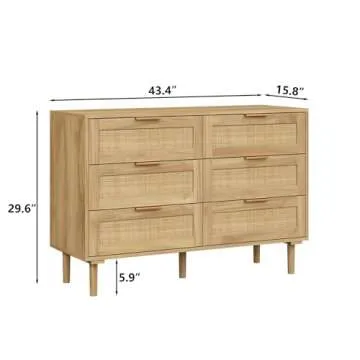 Furniouse 6 Drawer Rattan Dresser - Modern Wooden Storage Organizer
