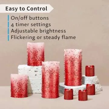 LIGHTING Red Glitter Real Wax LED Candles, featuring an
