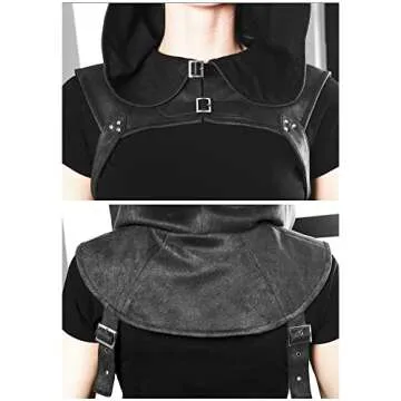 FURPHI Steampunk Rogue Medieval Hooded Cowl Hat Gothic Soft Faux Suede Cape Costume for Men Women (Large, Dark)