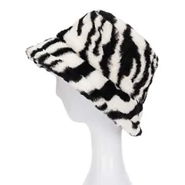 Furry Bucket Hat for Women Fluffy Thick Solid Warm Winter Zebra Pattern Bucket Hat Plush Fisherman Hat