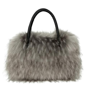 The bag is crafted from high-quality faux leather and adorned with chic faux fur.