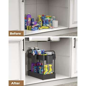 FURTIME 2-Tier Under-Sink Organizer, Black, Metal Tubes, Stainless Steel, Plastic, 15.7"L x 8.67"W x 16.14"H