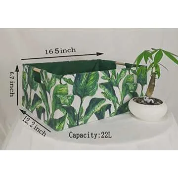 FUULOXE Storage Bin for Shelves Rectangle Closet Baskets Foldable Box with Handles Green Leaves Shelf Baskets Toy Boxes for Home Office Car Dormroom