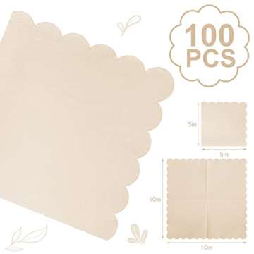 Fuutreo 100 Pcs Scalloped Cocktail Napkins Thick Paper Disposable Party Napkins Beverage Tissue for Wedding Dinner Birthday Supplies, 5 x 5 Inches(Milky White)