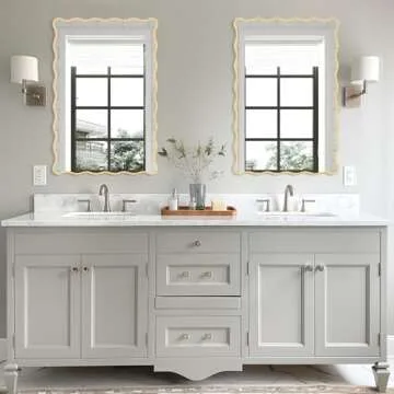 FUWU HOME Gold Wavy Bathroom Mirror 20" x 30" Rectangle Scalloped Mirror for Wall Decor, Bathroom Vanity, Bedroom, Living Room, Entryway