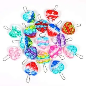 Show moreDiscover the joy and excitement of the Fuyage 20 Pack Heart Simple Mini Push Pop Bubble Fidget Sensory Stress Relief Toy Keychains for Kids and Adults! These delightful little keychains are not just toys; they are a perfect blend of fun and functionality. Crafted from premium quality silicone, they are non-toxic and designed with durability in mind, ensuring they can withstand repeated use while providing endless entertainment. Each keychain features a heart design that kids and adults alike will cherish.