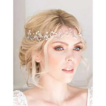 FXmimior Bridal Hair Accessories Crystal Headband Hair Vine Diadem Evening Hair Piece Headpiece Customised Long Piece Wedding Headpiece (silver)