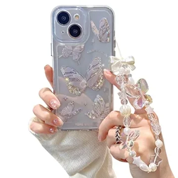 Fycyko iPhone 13/14 Butterfly Case with Chain - Cute Sparkly Protection