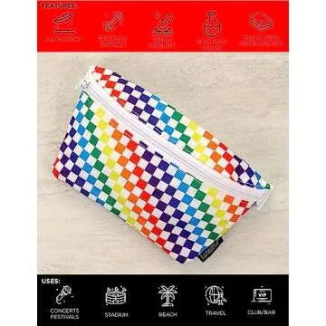 Show moreIntroducing the Fydelity Small Fanny Packs for women, a vibrant homage to the iconic 80s and 90s fashion that combines nostalgic appeal with modern functionality. This slim bum bag features a stylish rainbow design, perfect for those who love to express their individuality while enjoying the convenience of hands-free storage. Crafted for those on the go, these fanny packs fit comfortably around your waist or can be worn over the shoulder, making it a versatile accessory for anyone's wardrobe. With dimensions of 9" x 5.5" x 1", it packs a punch without adding bulk, ensuring you stay fashionable and functional.