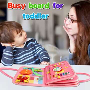 fyjous Busy Board for 1 Year Old, Montessori Busy Board Toys for Toddlers 1 2 3 4 Years Old Sensory Toys Quiet Book for Toddler Girls Educational Activity Airplane Car Travel Toys Birthday
